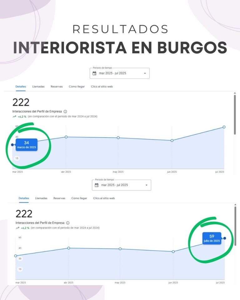 🏠 Visibilidad local reforzada, apareciendo en búsquedas clave como interiorismo Burgos y diseño de interiores Burgos.
